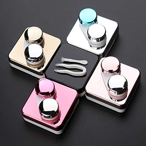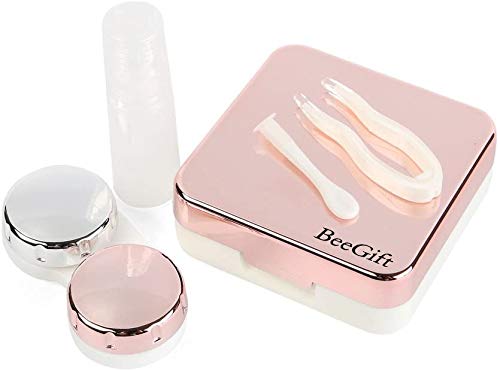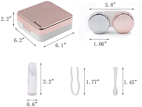Mini Stylish Simple Contact Lens Travel Case,BeeGift Container Kit Set Contacts Lens Hard Case Travel & Home Kit Mirror with Bottle with Tweezers Container Holder (Rose Gold-Square)