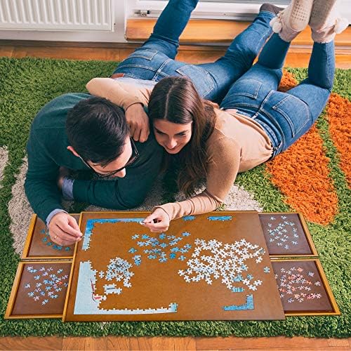 Jumbl 1000-Piece Puzzle Board | 23” x 31” Wooden Jigsaw Puzzle Table with 4 Removable Storage & Sorting Drawers | Smooth Plateau Fiberboard Work Surface & Reinforced Hardwood | for Games & Puzzles