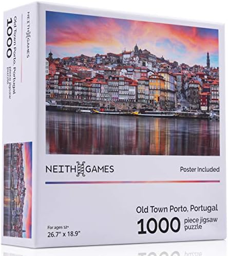 Neith Games – Old Town Porto – 1000 Piece Jigsaw Puzzle – Challenging Puzzle – Porto, Portugal View from Douro River