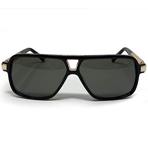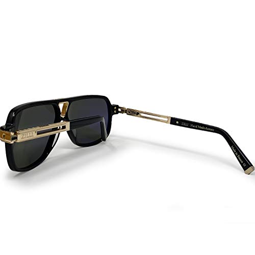 ZILLI 65036 Sunglasses for Men Aviator Titanium Eyeglasses Acetate Frame (24K Gold Plated, Black, C01)