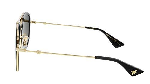 Gucci GG 0062S 011 Black Gold Metal Aviator Sunglasses Grey Gradient Polarized Lens